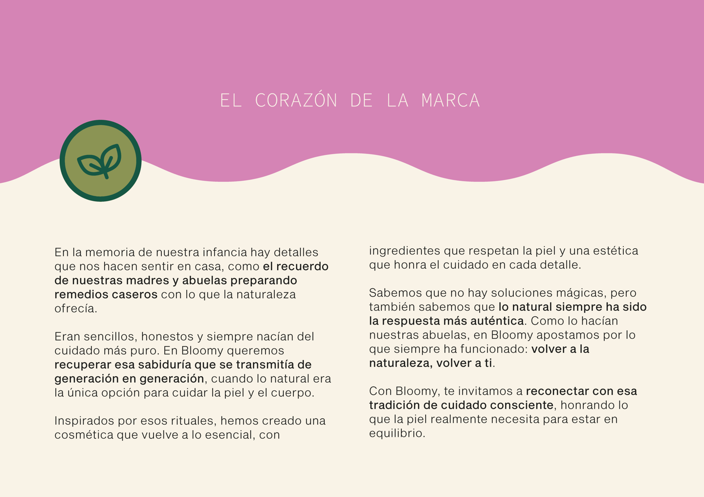Descubre el trabajo de branding para Bloomy, una marca de cosmética natural inspirada en los rituales de cuidado de nuestras madres y abuelas y en la idea de volver a lo esencial para cuidar la piel. En este brandboard se presenta su identidad visual junto al concepto que define su forma de verse, de expresarse y de relacionarse con las personas.